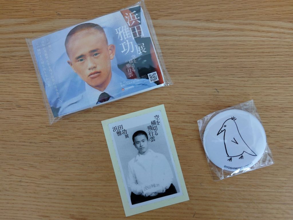 グッズコーナーも充実していましたが、欲しいものは見つからず。記念に缶バッチのガチャをしました。結果はペンギン(画像右)。あと、XにUpした特典(画像左上 / ポケットティッシュ)、平日入場特典(画像左下 / シール)を頂きました。