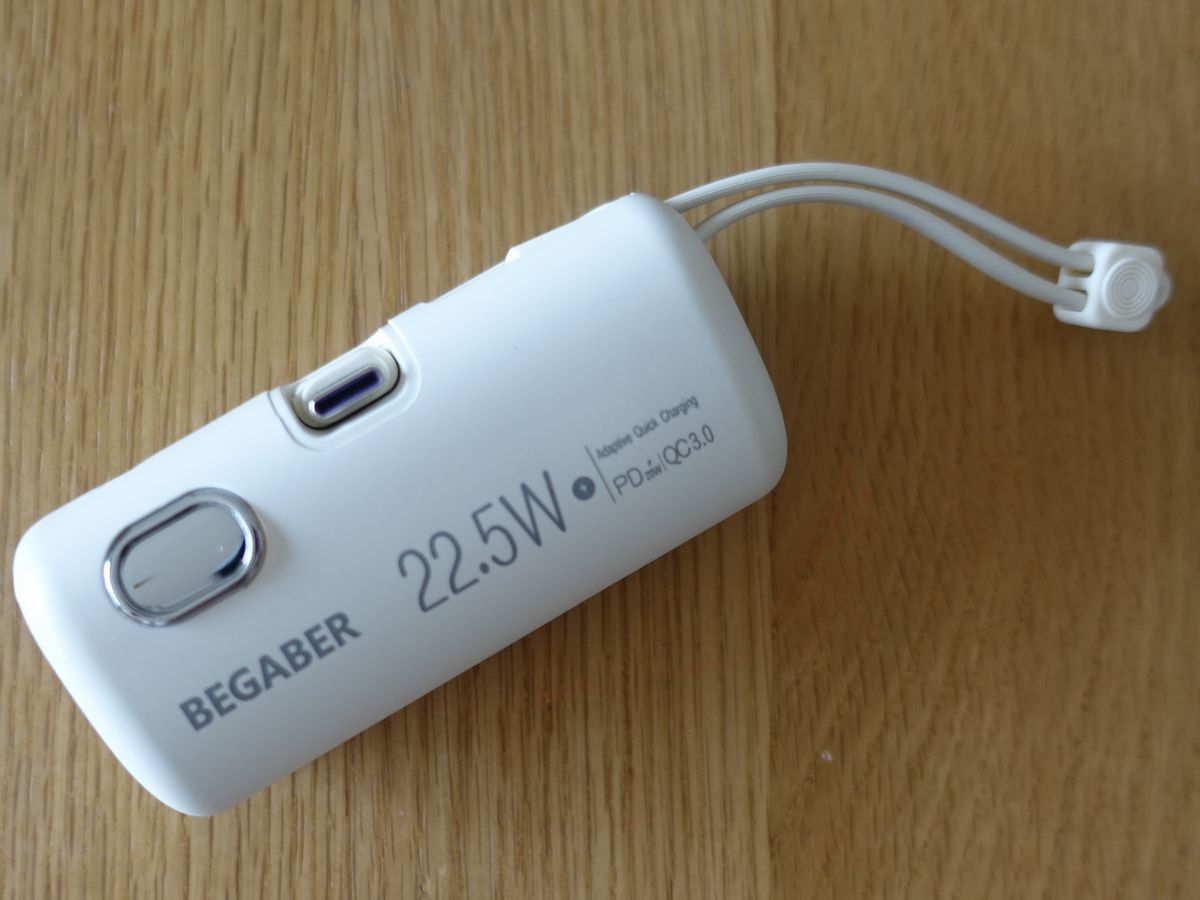スマホ1回分の充電ができればいいかな? ということで、ある程度の容量があって軽い、という条件に合致するこのモノにしました。今のところ、問題ないようです。