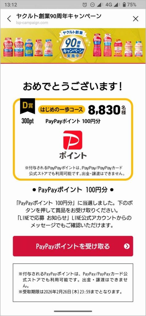 昨年末に実施されたヤクルトの「ヤクルト創業90周年キャンペーン」。毎日ヤクルトを飲んでいるのでチャレンジしてみました。