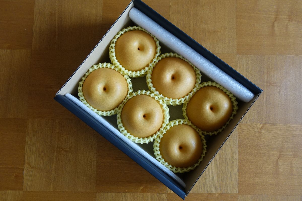 立派な箱も手伝って、とても立派にみえます。上品な甘さという印象、スーパーで売っているものとは、一味違うように感じました。やはり、「梨」は豊水です。